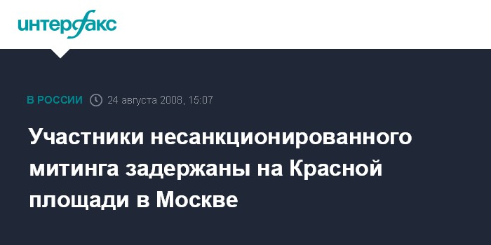 Москва. 24 августа. INTERFAX.RU - Четыре человека задержаны в воскресенье в Москве за попытку провести несанкционированную акцию на Красной площади, сообщил "Интерфаксу" источник в правоохранительных органах столицы.