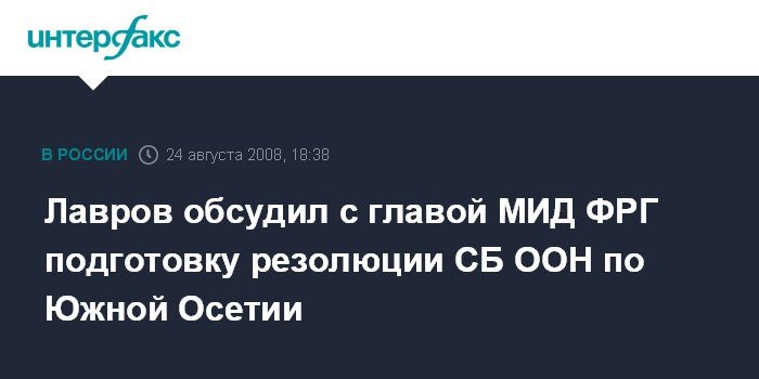 Лавров обсудил с главой МИД ФРГ подготовку резолюции СБ ООН по Южной Осетии