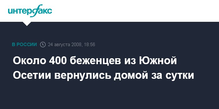 Владикавказ. 24 августа. INTERFAX.RU - На родину за минувшие сутки вернулись 389 беженцев, эвакуированных из Южной Осетии в связи с агрессией Грузии на территорию Северной Осетии и других субъектов Юга России.