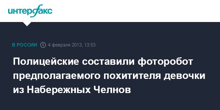 Казань. 4 февраля. INTERFAX.RU - На сайте МВД по Татарстану опубликован фоторобот мужчины, которого подозревают в похищении 8-летней жительницы поселка Сидоровка (в черте Набережных Челнов, Татарстан) Василисы Галициной, ее ищут с вечера субботы.