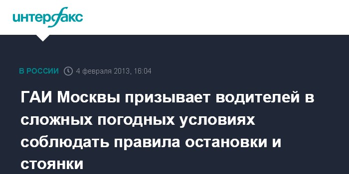 Москва. 4 февраля. INTERFAX.RU - Столичная Госавтоинспекция обращает внимание водителей на необходимость в сложных погодных условиях соблюдать правила остановки и стоянки транспорта для обеспечения бесперебойной работы коммунальных служб.