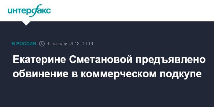 Екатерине Сметановой предъявлено обвинение в коммерческом подкупе