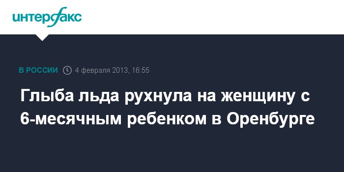 Оренбург. 4 февраля. INTERFAX.RU - В Оренбурге проводится проверка по факту получения травм 30-летней женщиной и ее 6-месячным сыном из-за схода льда с крыши здания, сообщает в понедельник пресс-служба городского управления МВД России.