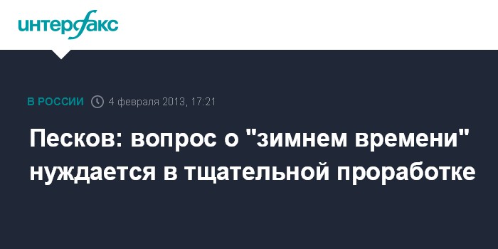 Песков: вопрос о "зимнем времени" нуждается в тщательной проработке