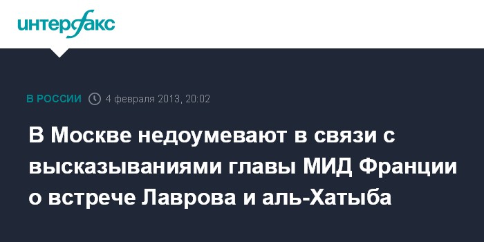 В связи с этим он выразил недоумение комментарием к встрече Лаврова и аль-Хатыба главы МИД Франции Лорана Фабиуса, заявившего, что раньше Россия отказывалась от контактов с Национальной коалицией, а теперь согласилась. "Подобные высказывания вызывают, как минимум, недоумение. С реальностью они, что называется, не дружат", - подчеркнул источник в МИД РФ.