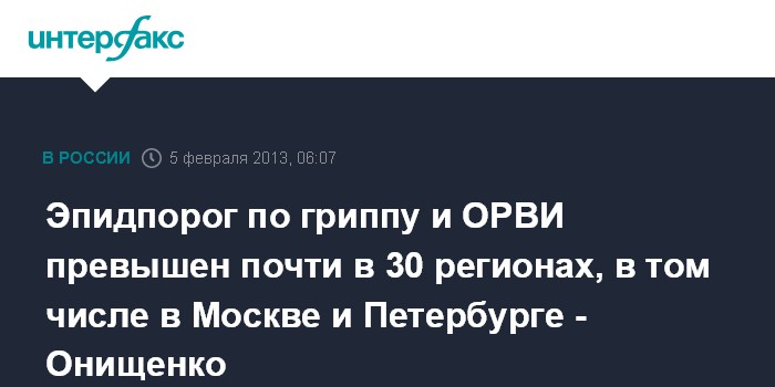 Эпидпорог по гриппу и ОРВИ превышен почти в 30 регионах, в том числе в Москве и Петербурге - Онищенко