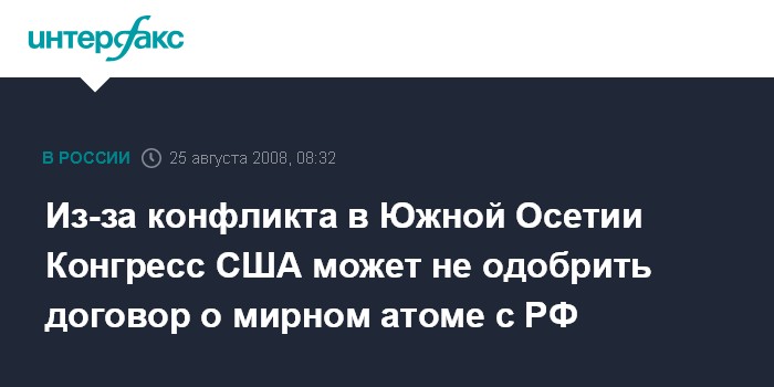 Из-за конфликта в Южной Осетии Конгресс США может не одобрить договор о мирном атоме с РФ
