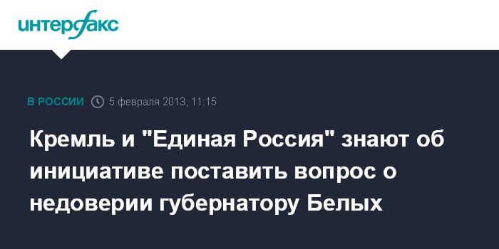 Кремль и "Единая Россия" знают об инициативе поставить вопрос о недоверии губернатору Белых
