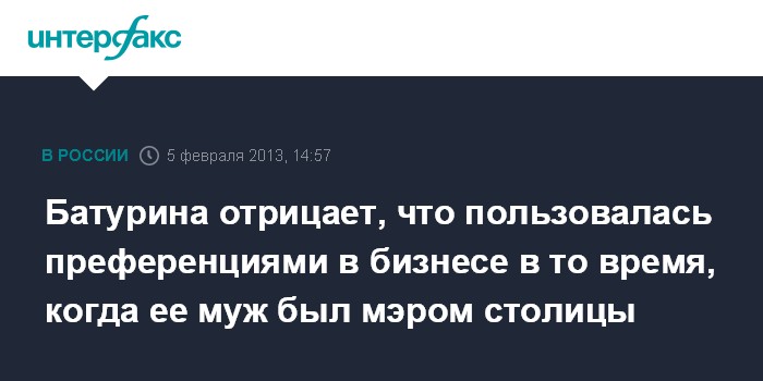Батурина отрицает, что пользовалась преференциями в бизнесе в то время, когда ее муж был мэром столицы