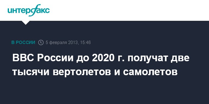 ВВС России до 2020 г. получат две тысячи вертолетов и самолетов