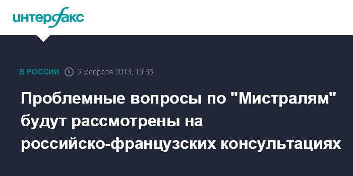 Проблемные вопросы по "Мистралям" будут рассмотрены на российско-французских консультациях