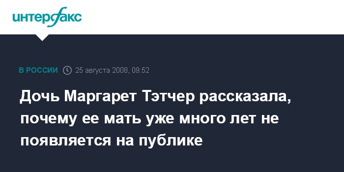 0Лондон. 25 августа. INTERFAX.RU - У бывшего премьер-министра Великобритании Маргарет Тэтчер развивается старческое слабоумие, пишет ее дочь Кэрол в своей книге.
