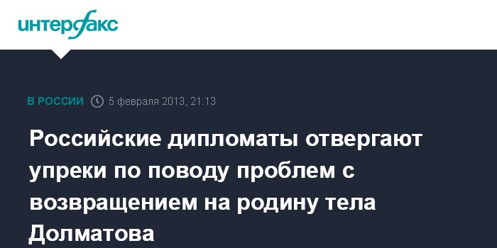 Российские дипломаты отвергают упреки по поводу проблем с возвращением на родину тела Долматова