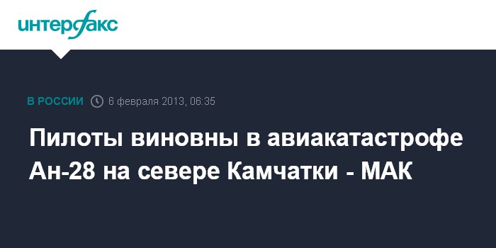 "Согласно заключению МАК, которое получило следствие, причиной авиакатастрофы послужили действия пилотов, не соответствовавшие правилам безопасности полетов", - сообщил агентству "Интерфакс-Дальний Восток" в среду представитель Камчатского следственного отдела Дальневосточного следственного управления на транспорте СК РФ.