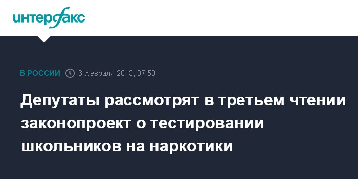 Москва. 6 февраля. INTERFAX.RU - Проект закона о добровольном тестировании учащихся школ и студентов средних и высших учебных заведений на потребление наркотических веществ будет рассмотрен во втором чтении на пленарном заседании Мосгордумы в среду.