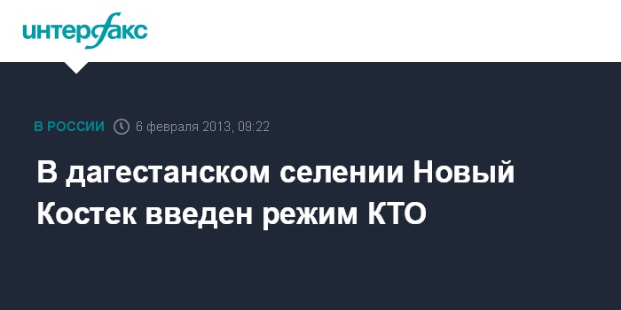 Махачкала. 6 февраля. INTERFAX.RU - Правовой режим контртеррористической операции введен утром в среду в селении Новый Костек Хасавюртовского района, сообщили "Интерфаксу" в Оперативном штабе в Дагестане.