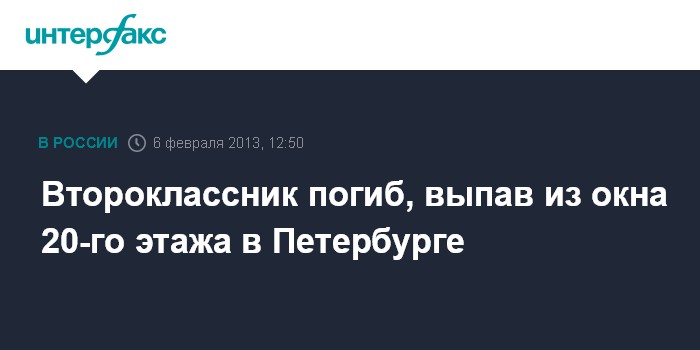 Санкт-Петербург. 6 февраля. INTERFAX.RU - В Петербурге возбуждено уголовное дело по факту падения 9-летнего мальчика с 20-го этажа, сообщает пресс-служба городского СКР.