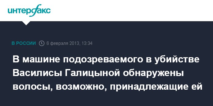 Казань. 6 февраля. INTERFAX.RU - На экспертизу направлены волосы, обнаруженные в машине жителя Набережных Челнов гражданина Узбекистана, подозреваемого в убийстве восьмилетней жительницы Набережных Челнов Василисы Галицыной, сообщил агентству "Интерфакс" старший помощник руководителя СУ СКР по Татарстану Андрей Шептицкий в среду.