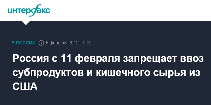 Россия с 11 февраля запрещает ввоз субпродуктов и кишечного сырья из США