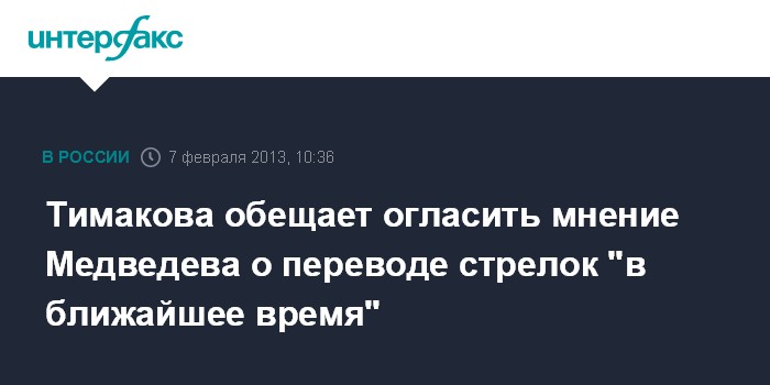 Тимакова обещает огласить мнение Медведева о переводе стрелок "в ближайшее время"