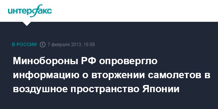 Москва. 7 февраля. INTERFAX.RU - Российские истребители не нарушали воздушное пространство Японии, заявил в четверг "Интерфаксу" официальный представитель Восточного военного округа подполковник Александр Гордеев.
