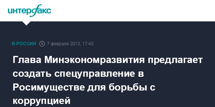 Глава Минэкономразвития предлагает создать спецуправление в Росимуществе для борьбы с коррупцией