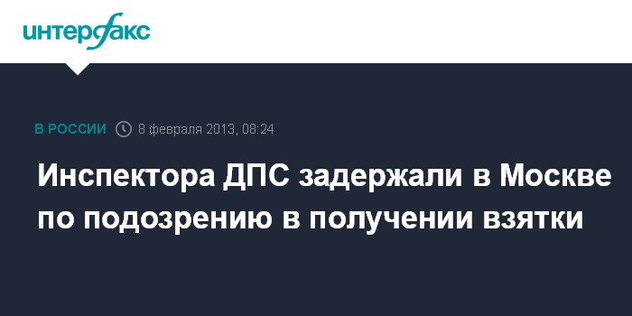 Москва. 8 февраля. INTERFAX.RU - Инспектор ДПС задержан в четверг вечером по подозрению в получении взятки на юго-западе Москвы, сообщили журналистам в пресс-службе ГУ МВД России по Москве.