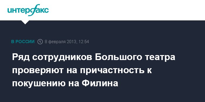 Ряд сотрудников Большого театра проверяют на причастность к покушению на Филина