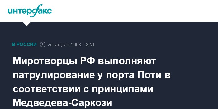 Миротворцы РФ выполняют патрулирование у порта Поти в соответствии с принципами Медведева-Саркози