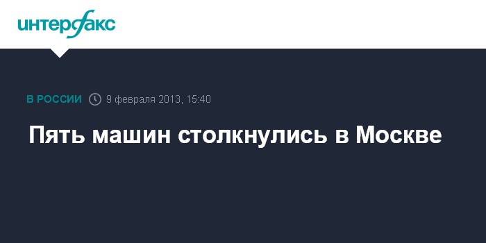 Москва. 9 февраля. INTERFAX.RU - На Можайском шоссе в Москве произошло ДТП с участием пяти автомобилей, сообщил "Интерфаксу" источник в правоохранительных органах в субботу.