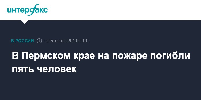 Москва. 10 февраля. ИНТЕРФАКС - Пять человек погибли в результате пожара в деревянном жилом доме в городе Усолье Пермского края, сообщает в воскресенье пресс-служба краевого ГУ МЧС РФ.