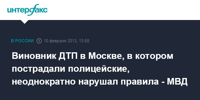 Москва. 10 февраля INTERFAX.RU - Водитель иномарки, сбившей в воскресенье утром трех сотрудников ДПС в Москве, неоднократно попадался на нарушениях ПДД, сообщил в воскресенье представитель пресс-службы столичного главка МВД РФ.