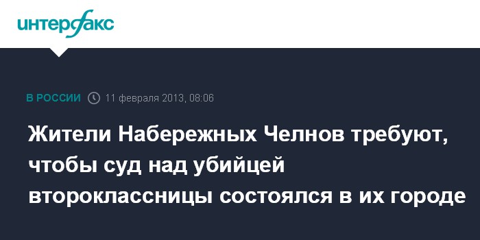 Казань. 11 февраля. INTERFAX.RU - Волонтеры - жители Набережных Челнов, принимавшие участие в розыске похищенной и убитой 8-летней Василисы Галицыной, считают, что суд над педофилом должен обязательно пройти в их городе, а наказание таким преступникам нужно ужесточить.