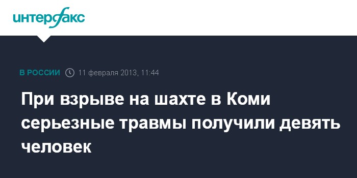 При взрыве на шахте в Коми серьезные травмы получили девять человек