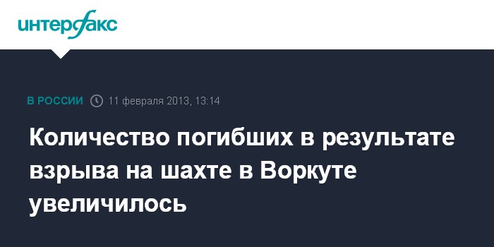 Количество погибших в результате взрыва на шахте в Воркуте увеличилось