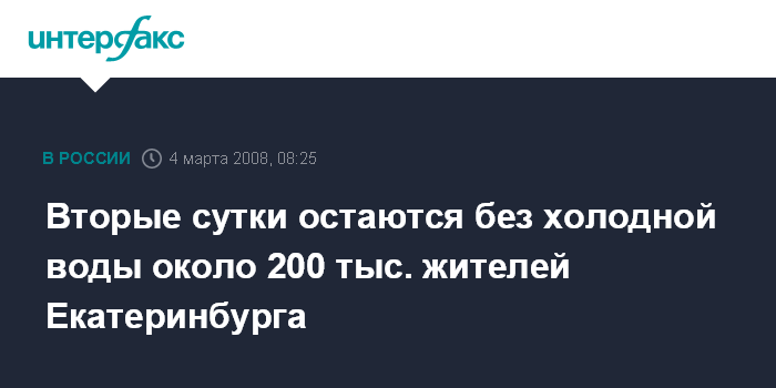 Екатеринбург. 4 марта. INTERFAX.RU - Специалисты МУП "Водоканал" (Екатеринбург) планируют к вечеру вторника ликвидировать аварию на водоводе, в результате которой вторые стуки около 200 тыс. жителей Екатеринбурга остаются без холодного водоснабжения.