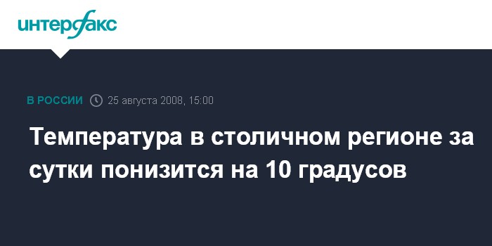 Москва. 25 августа. INTERFAX.RU - В Московском регионе и соседних областях в ближайшие сутки похолодает на 10 градусов, сообщил директор Гидрометцентра России Роман Вильфанд.
