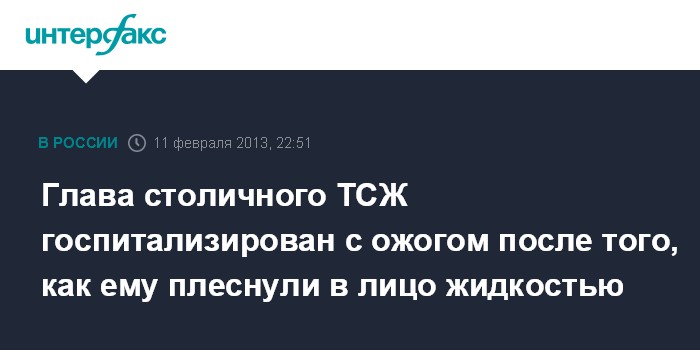 Глава столичного ТСЖ госпитализирован с ожогом после того, как ему плеснули в лицо жидкостью