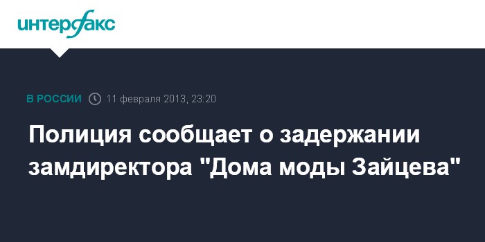 Полиция сообщает о задержании замдиректора "Дома моды Зайцева"