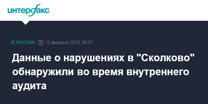 Москва. 12 февраля. INTERFAX.RU - Финансовые нарушения в деятельности Фонда "Сколково" были выявлены в ходе внутреннего аудита, после чего переданы в следственные орган.