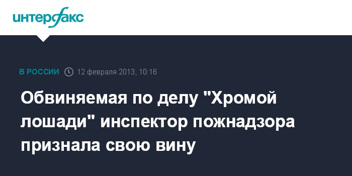 Обвиняемая по делу "Хромой лошади" инспектор пожнадзора признала свою вину