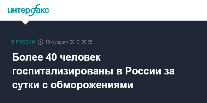Более 40 человек госпитализированы в России за сутки с обморожениями