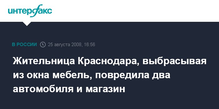 Жительница Краснодара, выбрасывая из окна мебель, повредила два автомобиля и магазин
