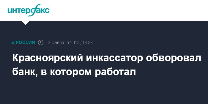 Красноярск. 13 февраля. INTERFAX.RU - Полицейские управления экономической безопасности в Ачинске (Красноярский край) задержали инкассатора, подозреваемого в хищении денег банка, в котором работал, сообщает в среду пресс-служба ГУ МВД России по региону.