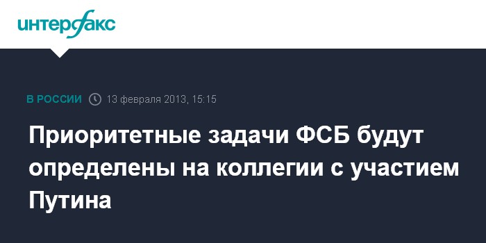 Приоритетные задачи ФСБ будут определены на коллегии с участием Путина