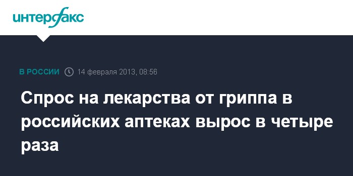 Москва. 14 февраля. INTERFAX.RU - В несколько раз возрос с начала месяца спрос россиян на антигриппозные препараты.