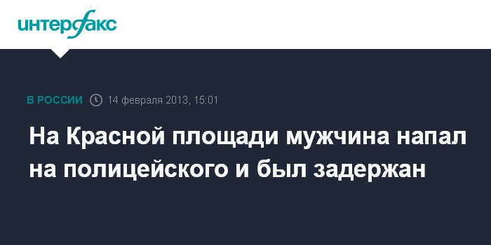 Москва. 14 февраля. INTERFAX.RU - На Красной площади в Москве задержан мужчина с бейсбольной битой, который набросился на сотрудника полиции, сообщили "Интерфаксу" в пресс-службе столичного главка МВД.
