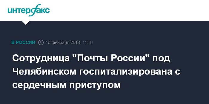 Сотрудница "Почты России" под Челябинском госпитализирована с сердечным приступом
