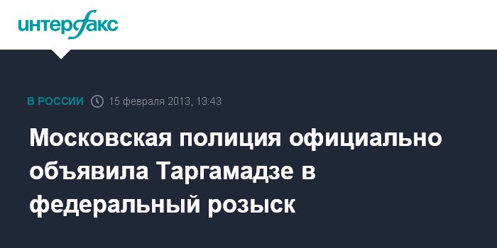 Сотрудник пресс-службы сообщил, что московская полиция в пятницу официально объявила Таргамадзе в федеральный розыск, внеся информацию о нем в единую электронную базу данных разыскиваемых лиц.