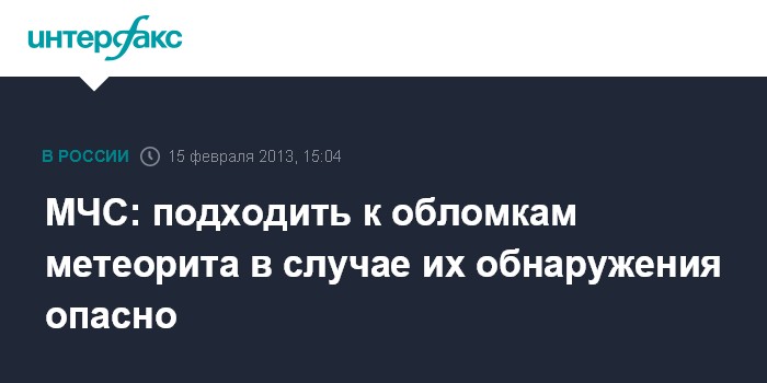 Москва. 15 февраля. INTERFAX.RU - МЧС России предупреждает об опасности приближения к обломкам метеорита, которые могут быть обнаружены на Урале.